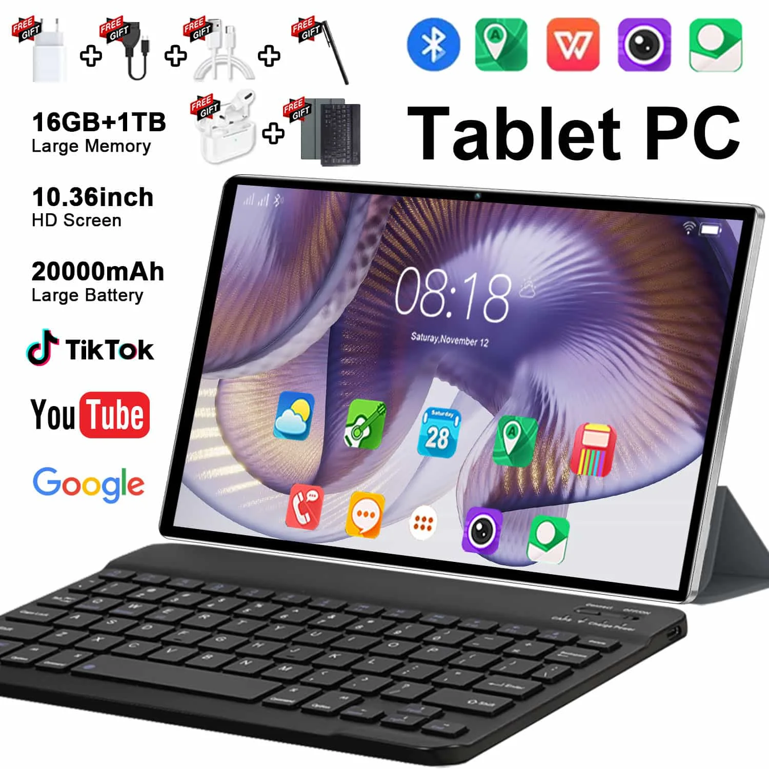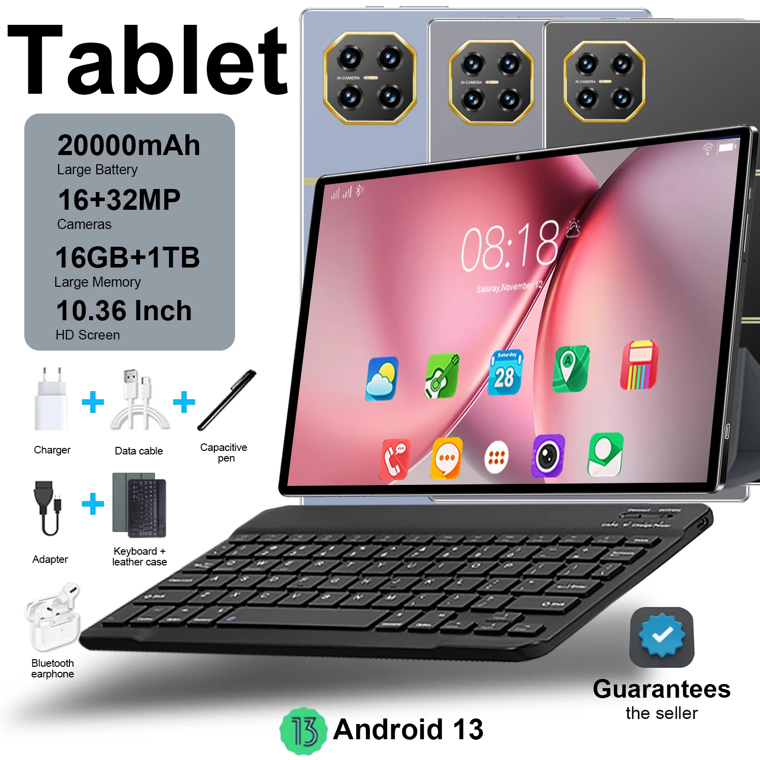 Tablet android grande tela hd 10.36 polegadas 16gb ram 1tb rom 20000mah android 13.0 14 núcleos tablets pc tipo-c câmera dupla 16mp + 32mp cartão sim duplo rede wifi bluetooth gps wps presentes de escritório