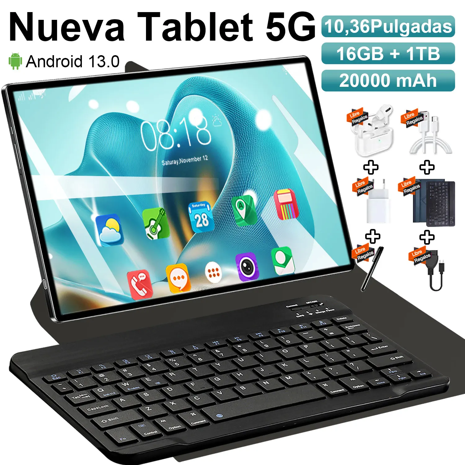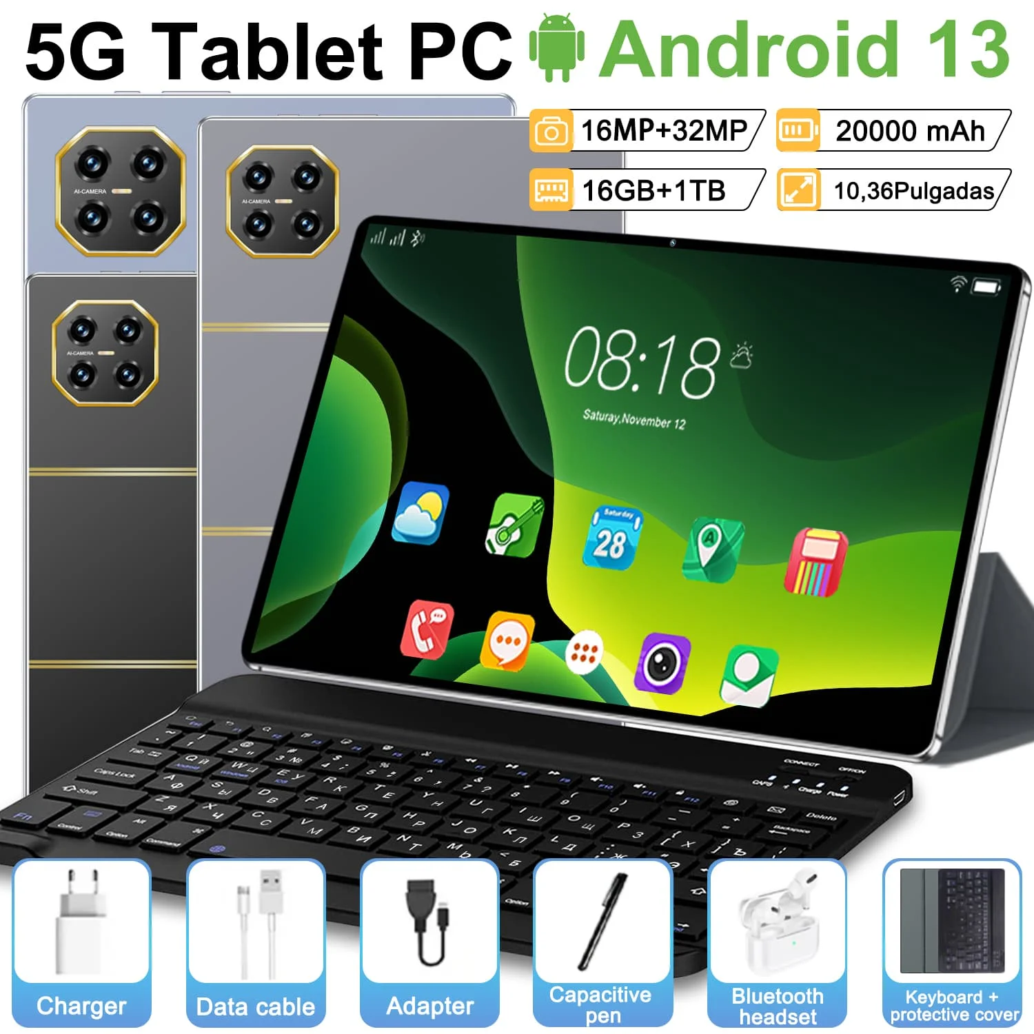 2025 5g global inteligente tablet de 10.36 polegadas 12gb 512gb 4k hd 14 núcleos android 13 almofada wifi bluetooth wps google play 20000mah comprimidos