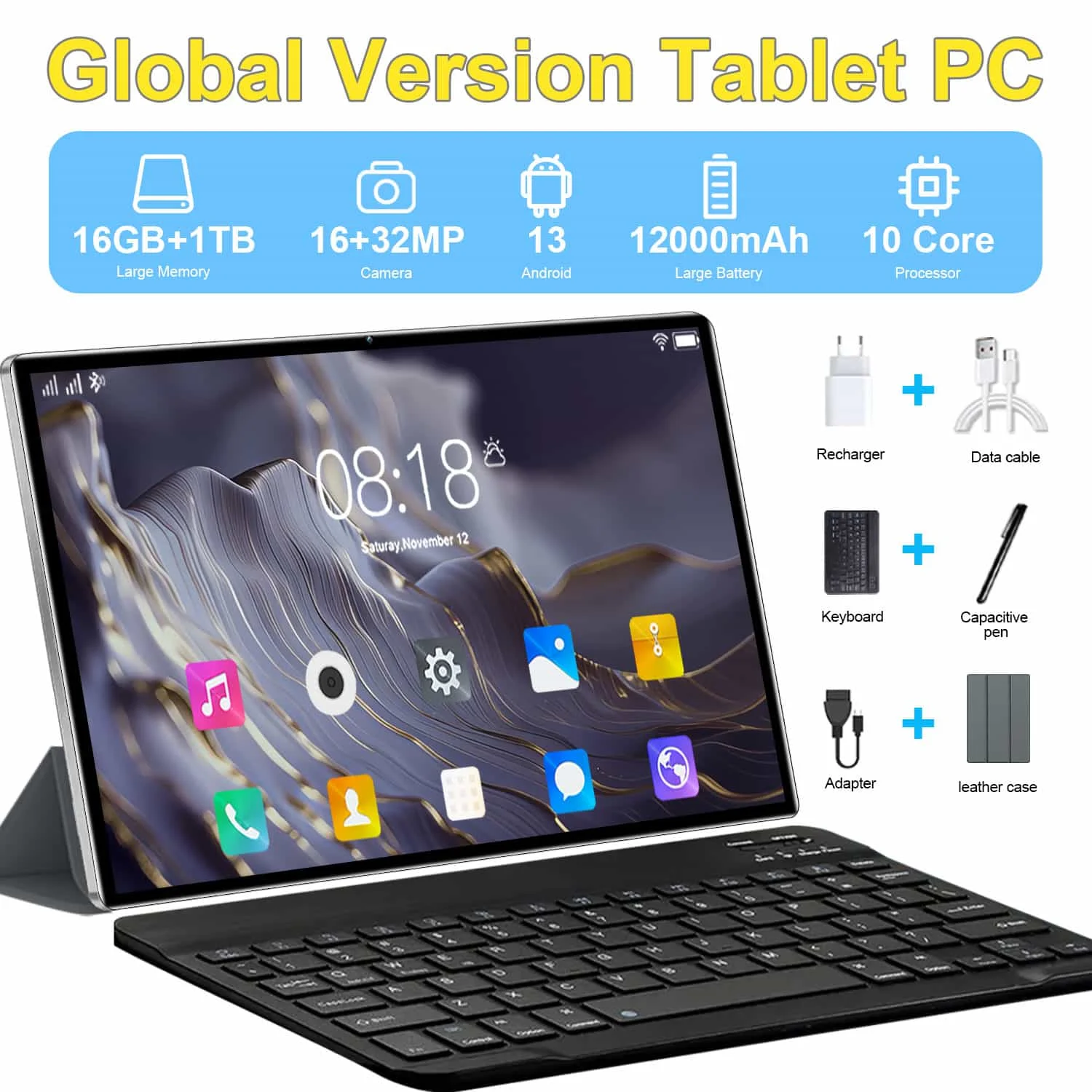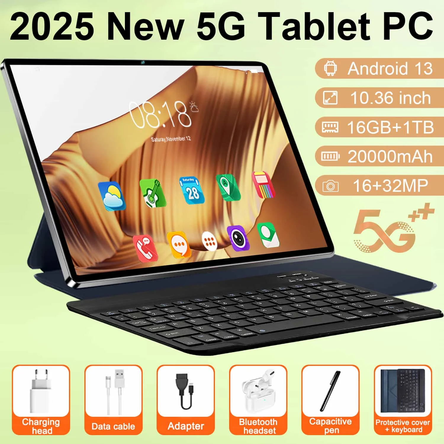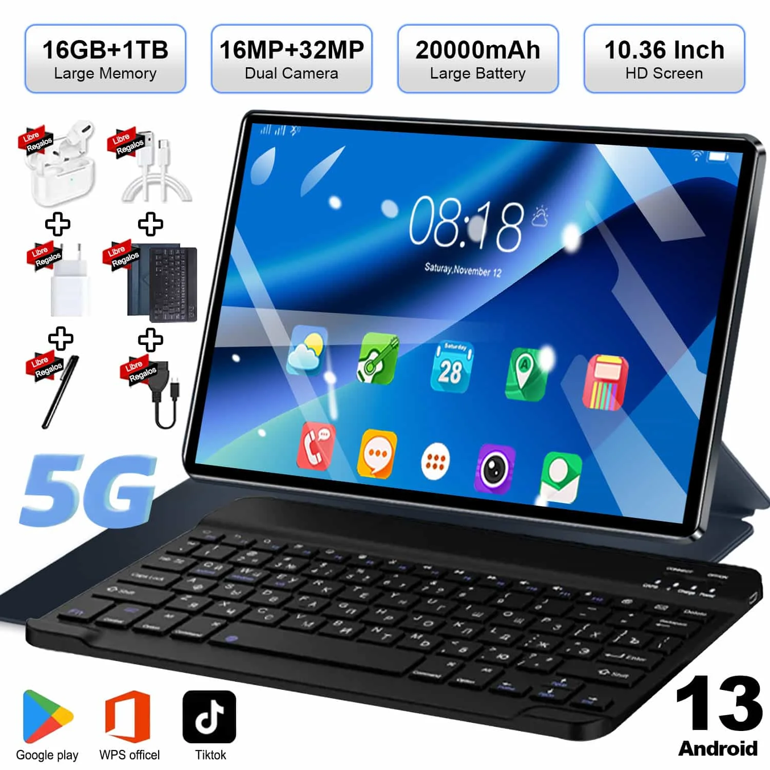 2025 novo android 13 10.36 polegada tablet 16gb + 1tb 20000mah 5g 14 núcleo wifi gps 16mp + 32mp duplo sim hd estudante escritório