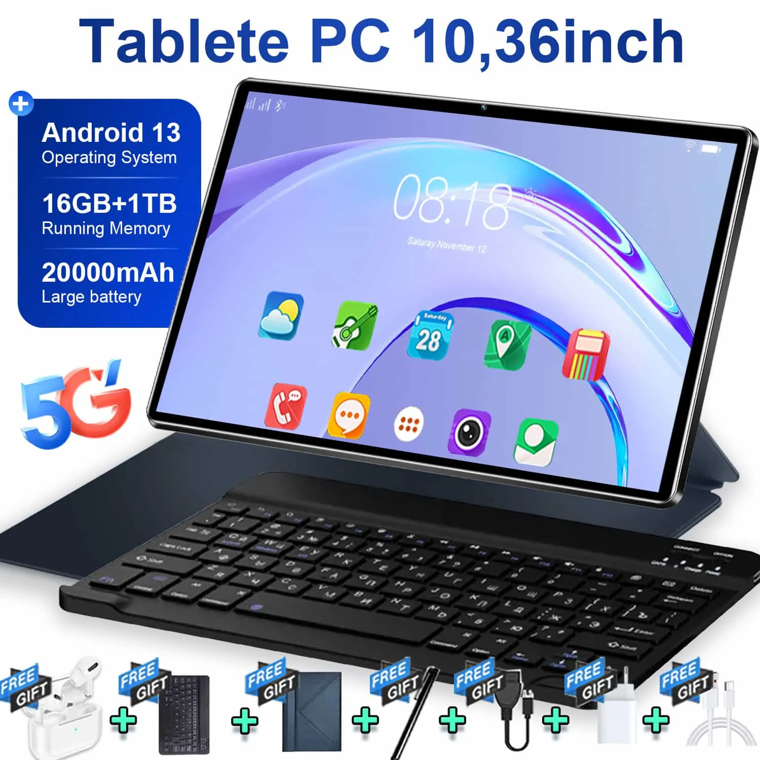 10.36 Polegada android 13 5g tablet 2025 processador poderoso de 14 núcleos 16gb ram 1tb rom 20000mah bateria banda dupla wifi