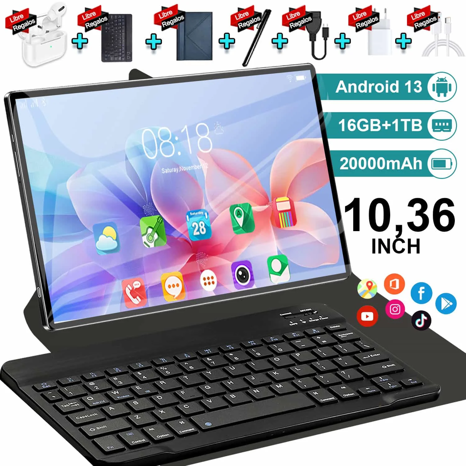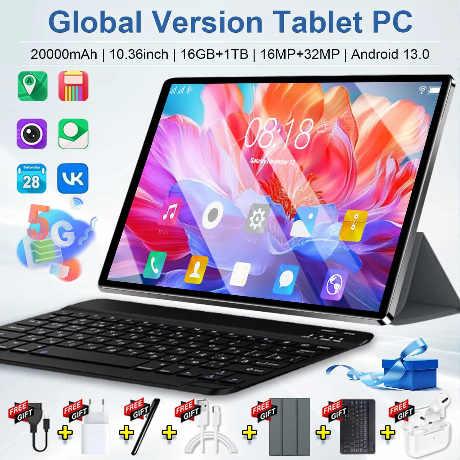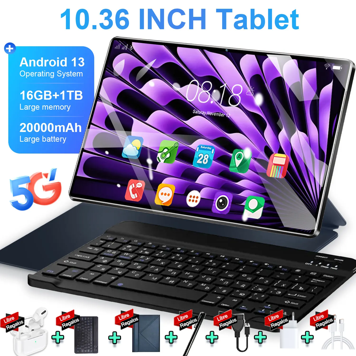 Hd 5g tablet 10.36 polegadas 16gb + 1tb 14 núcleo android13 20000mah sim duplo 16mp + 32mp câmera dupla gps wifi bluetooth 2026 novo global