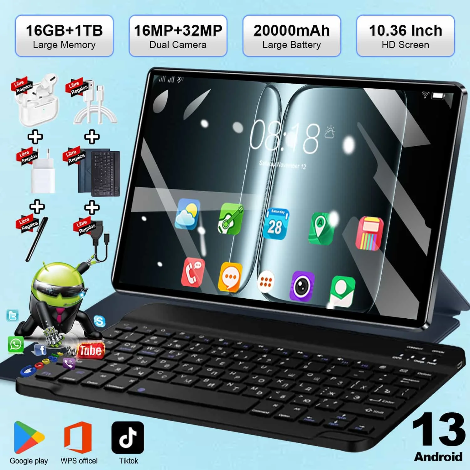 Versão global novo 5g 10.36 Polegada tablet android 16gb ram 1tb rom 20000mah android 13.0 rede wifi 14 núcleo wps escritório 4k tela hd tablet pc tipo-c com teclado bluetooth