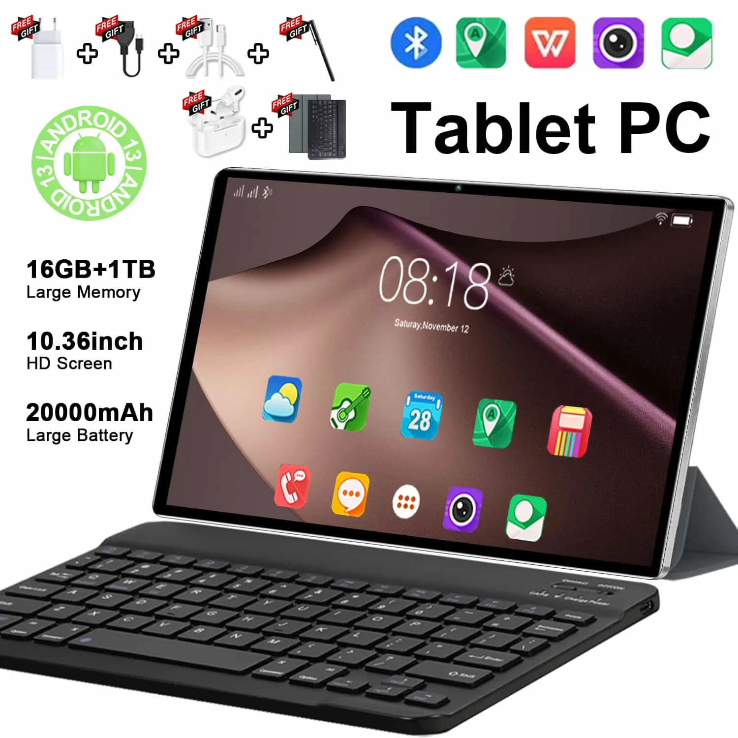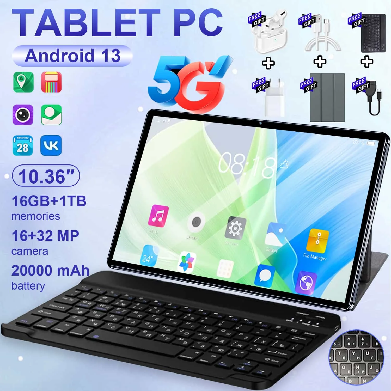 Versão global novo 5g 10.36 Polegada tablet android 16gb ram 1tb rom 20000mah android 13.0 rede wifi 14 núcleo wps escritório 4k tela hd tablet pc tipo-c com teclado bluetooth