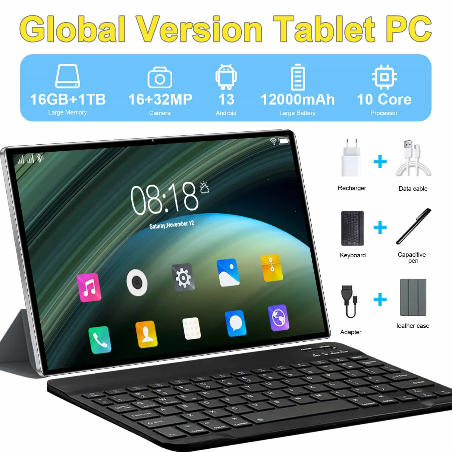 2025 mais recente primeiro tablet global android 13/10.36 polegadas/16mp + 32mp/10 núcleo/12000mah/16gb ram + 1tb rom/para tablet de estudo de escritório.