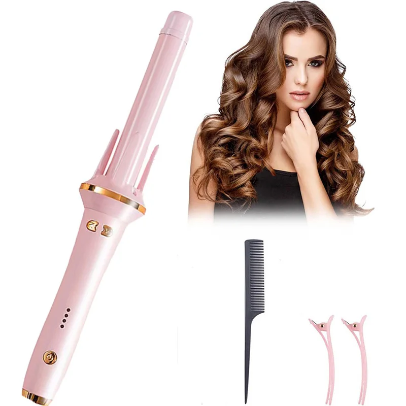 Modelador de cabelo nano titânio profissional, estilos de tamanho de diâmetro com led digital preto + cor dourada, ferro de ondulação rotativo automático