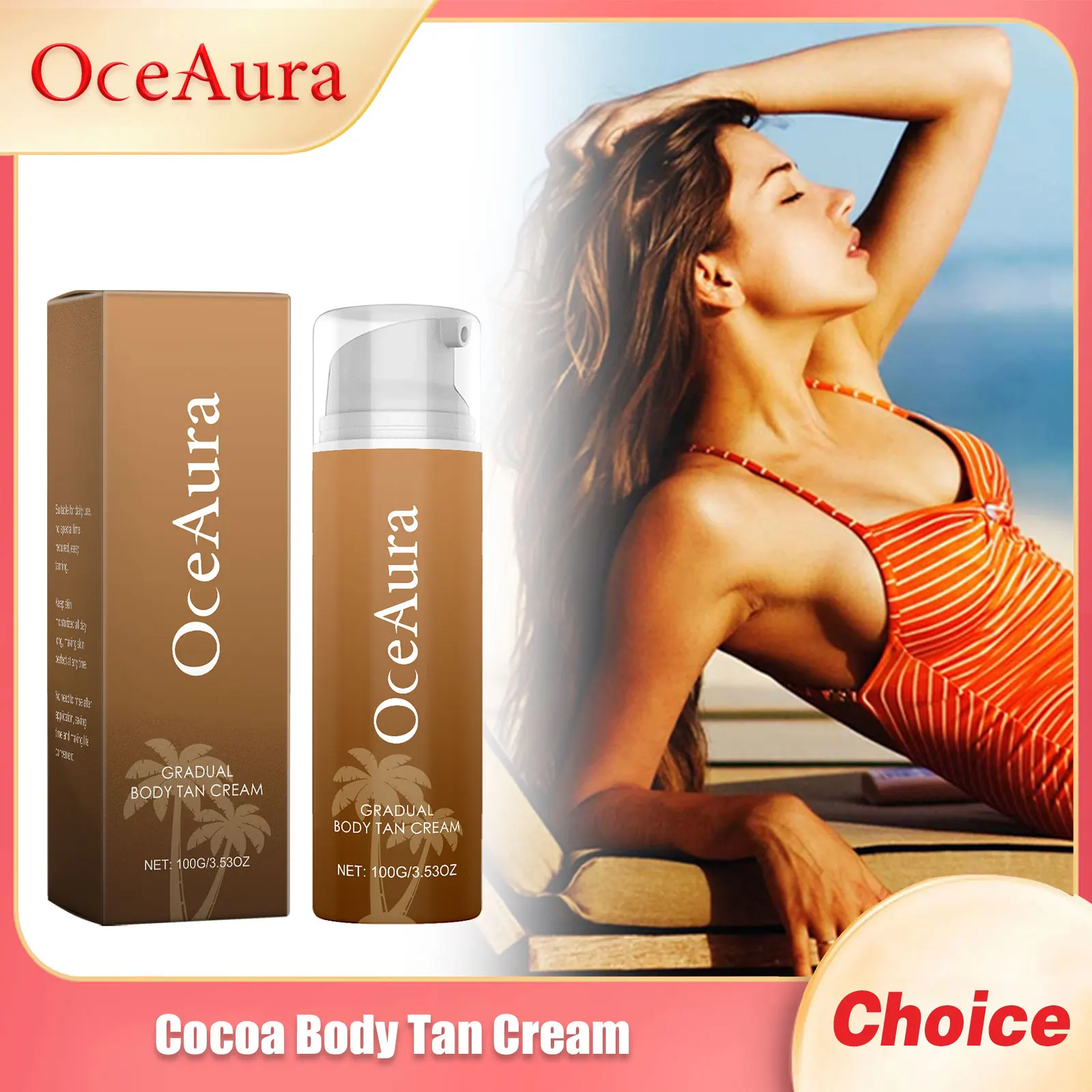 Creme Bronzeador Corporal Oceaura Cocoa Acelerador de Absorção de Luz Solar para Bronzeado Sexy e Protegido, Sem Sol, Fácil de Usar, Cremes Bronzeadores 100g