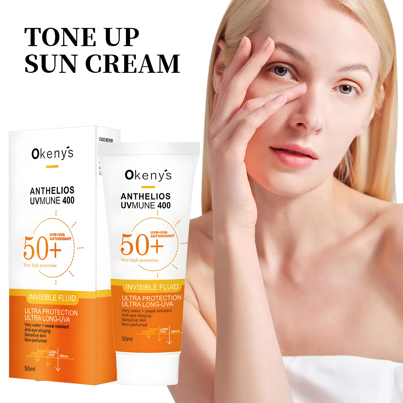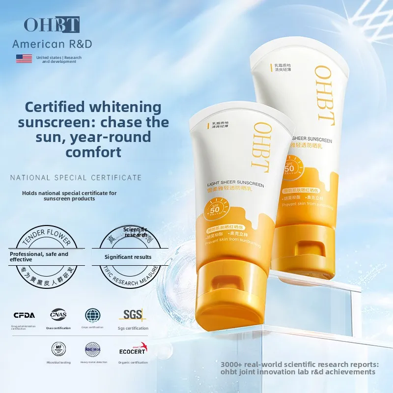 Protetor solar spf50 pa +++ ohbt, proteção solar uv, hidratante, refrescante, não pegajoso, à prova de suor, loção protetora, produtos de cuidados com a pele