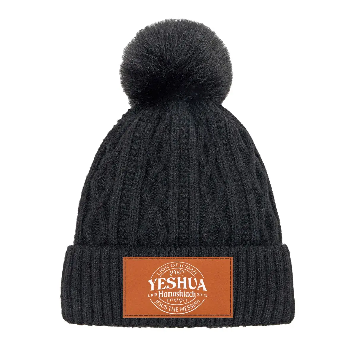 Chapéu de pompom de malha macia com texto religioso Yeshua para uso diário em campus de escritório