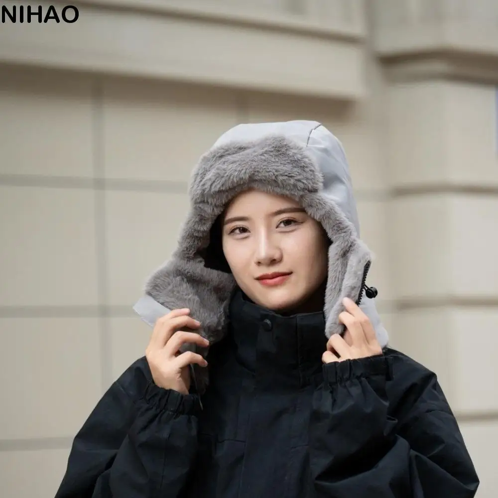 Y2k gorro trapper neve esqui chapéu de pelúcia malha engrossado lei feng chapéu calor estendido proteção de orelha chapéu tie-fixado capuz boné