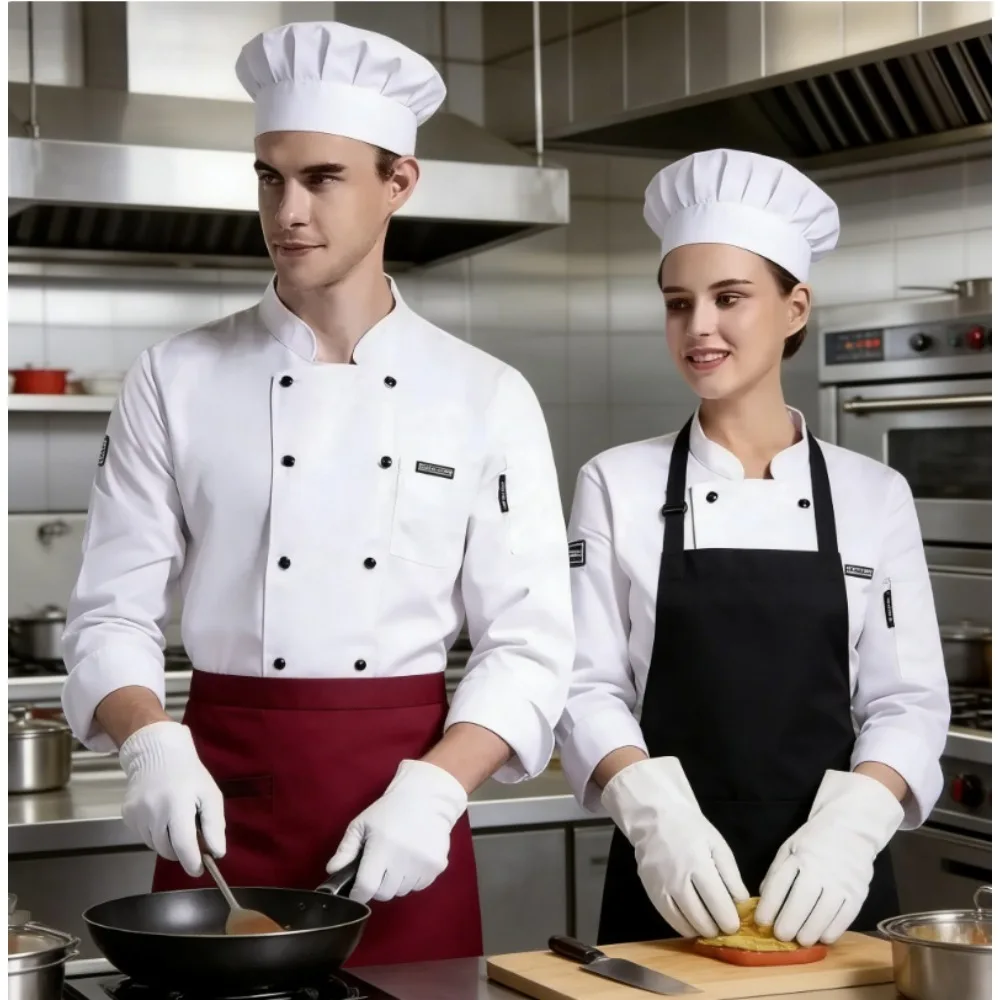 Jaqueta de chef de manga curta/longa, cor pura, algodão, cozimento, catering, pastelaria, casaco, hotel, cozinha, garçom, uniforme