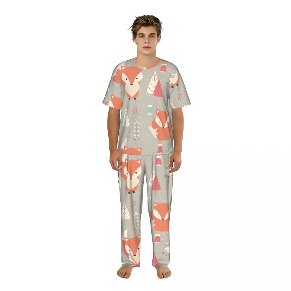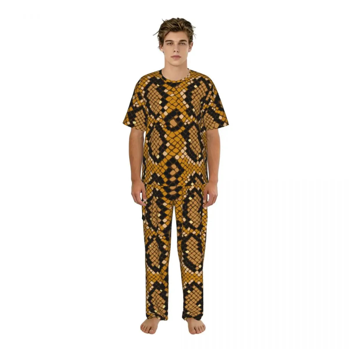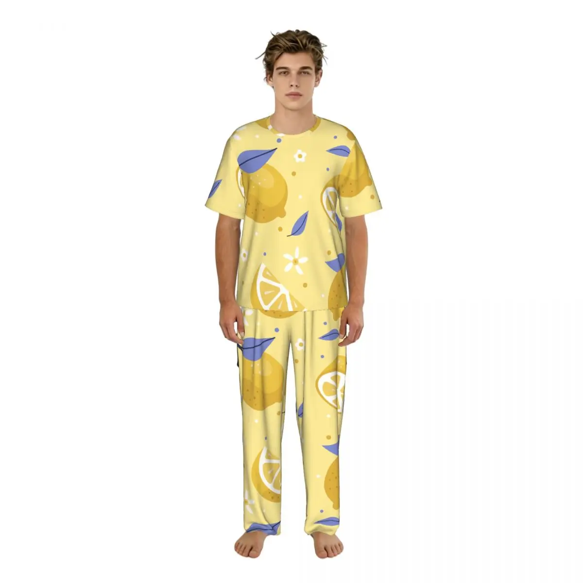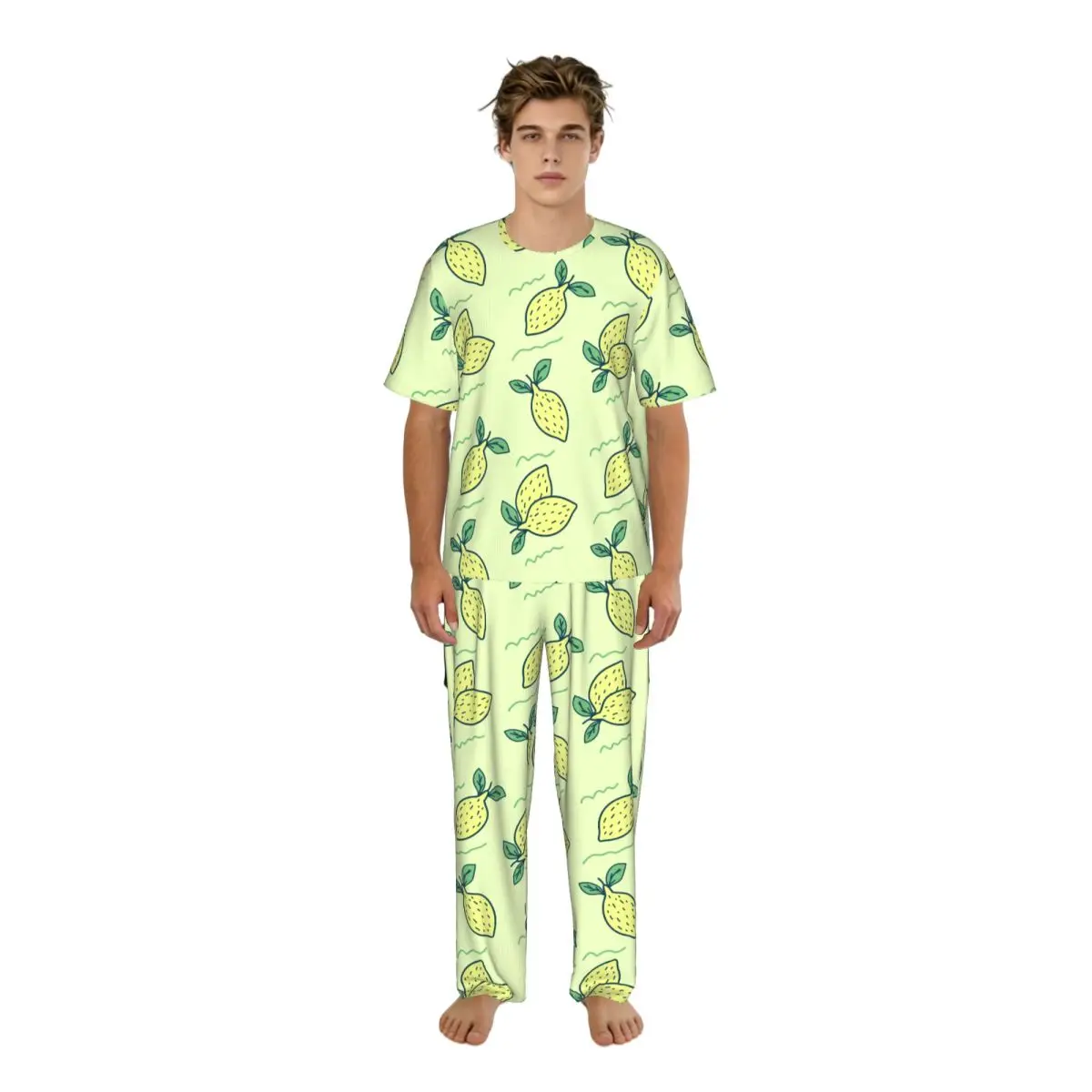 Conjunto de pijamas masculinos de verão, camisetas de manga curta + calças compridas, roupa de dormir para casa, pijamas coloridos com estampa de galáxia