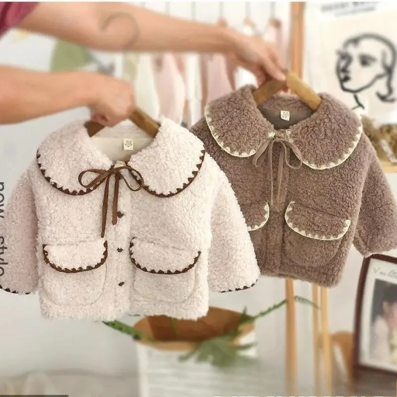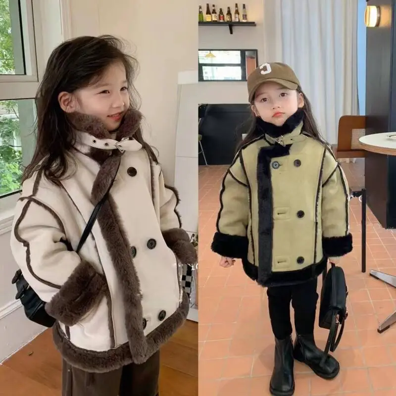 Novo Casaco de Inverno para Meninas Pequenas Estilo Coreano 2026, Jaqueta Rosa de Princesa em Fleece Grosso com Forro de Pele Sintética