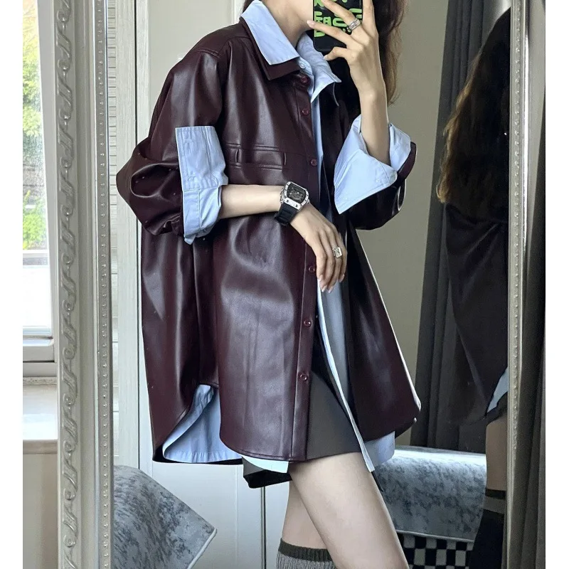 Casaco feminino tendência da moda simples outono inverno gola analógica zíper couro do plutônio jaqueta de motocicleta para mulher