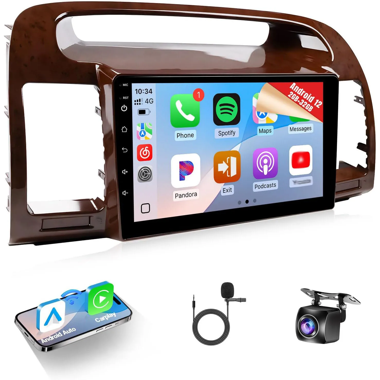 Rádio de Carro Android 12 de 8 Núcleos para Toyota Camry 2002-2006, Upgrade de Estéreo (Compatível com J.B.L e Tela Grande), CarPlay, Android Auto, Bluetooth