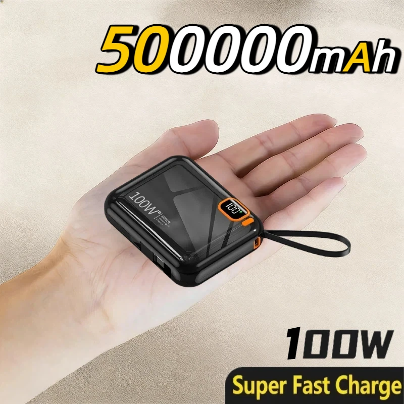 Power Bank de 50000mAh 100W com Cabo USB para Tipo C Destacável, Carregador Rápido Bidirecional, Mini Powerbank para iPhone, Xiaomi, Samsung 2026