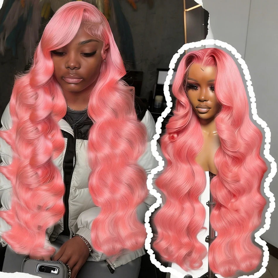 Peruca rosa hd peruca de renda 13x6 cabelo humano 13x4 onda do corpo perucas dianteiras do laço 250 densidade perucas frontais do laço cabelo brasileiro 40 Polegada colorido