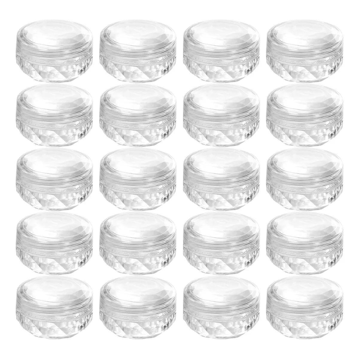 20 peças de potes de armazenamento com design de diamante, recipientes de plástico para maquiagem, tampa transparente para pó, cremes, líquidos, esmalte de unhas