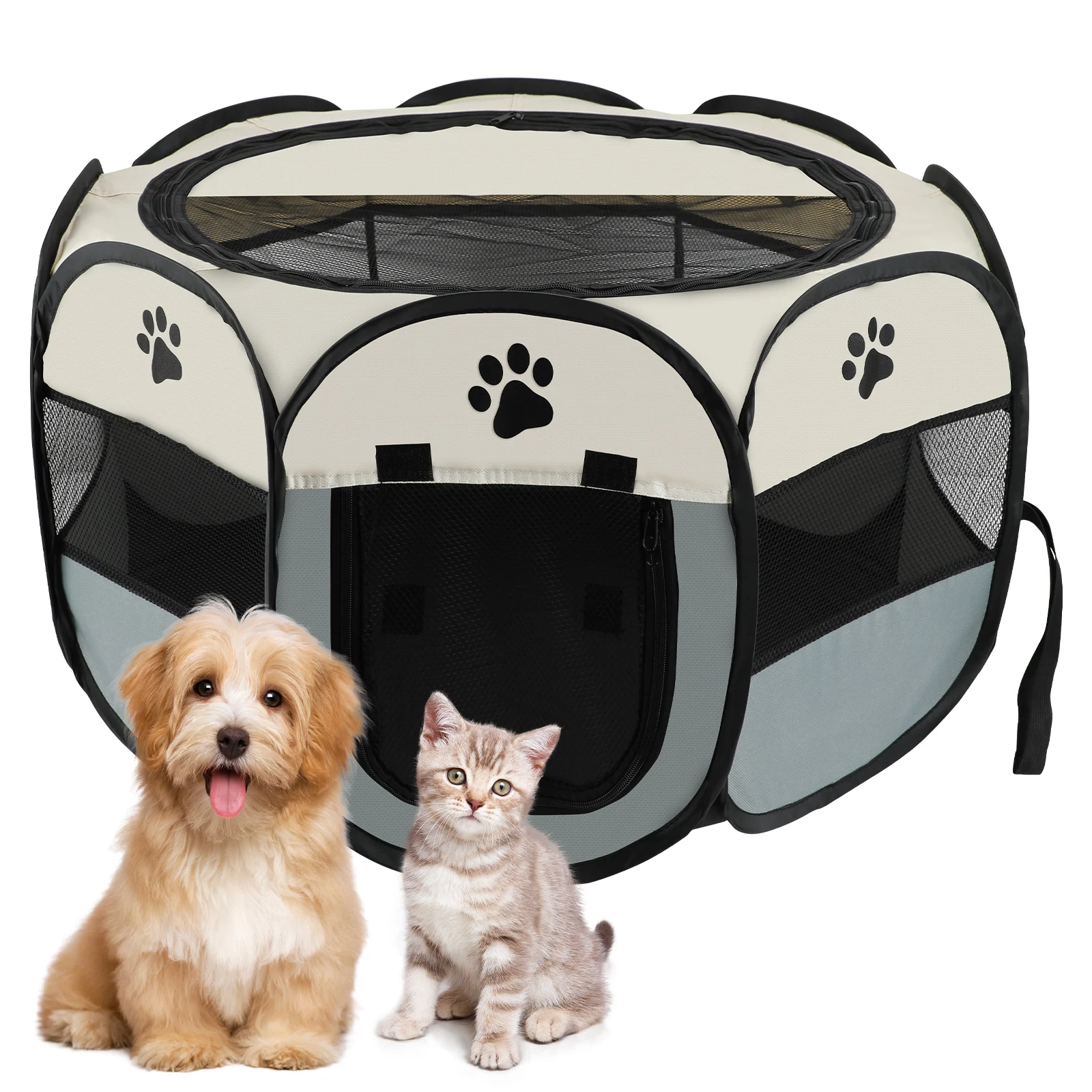 Gaiola Dobrável para Cães Pequenos e Médios, Gatos e Coelhos, Transportadora de Animais de Estimação em Aço Resistente com Ventilação e Visibilidade Confortável