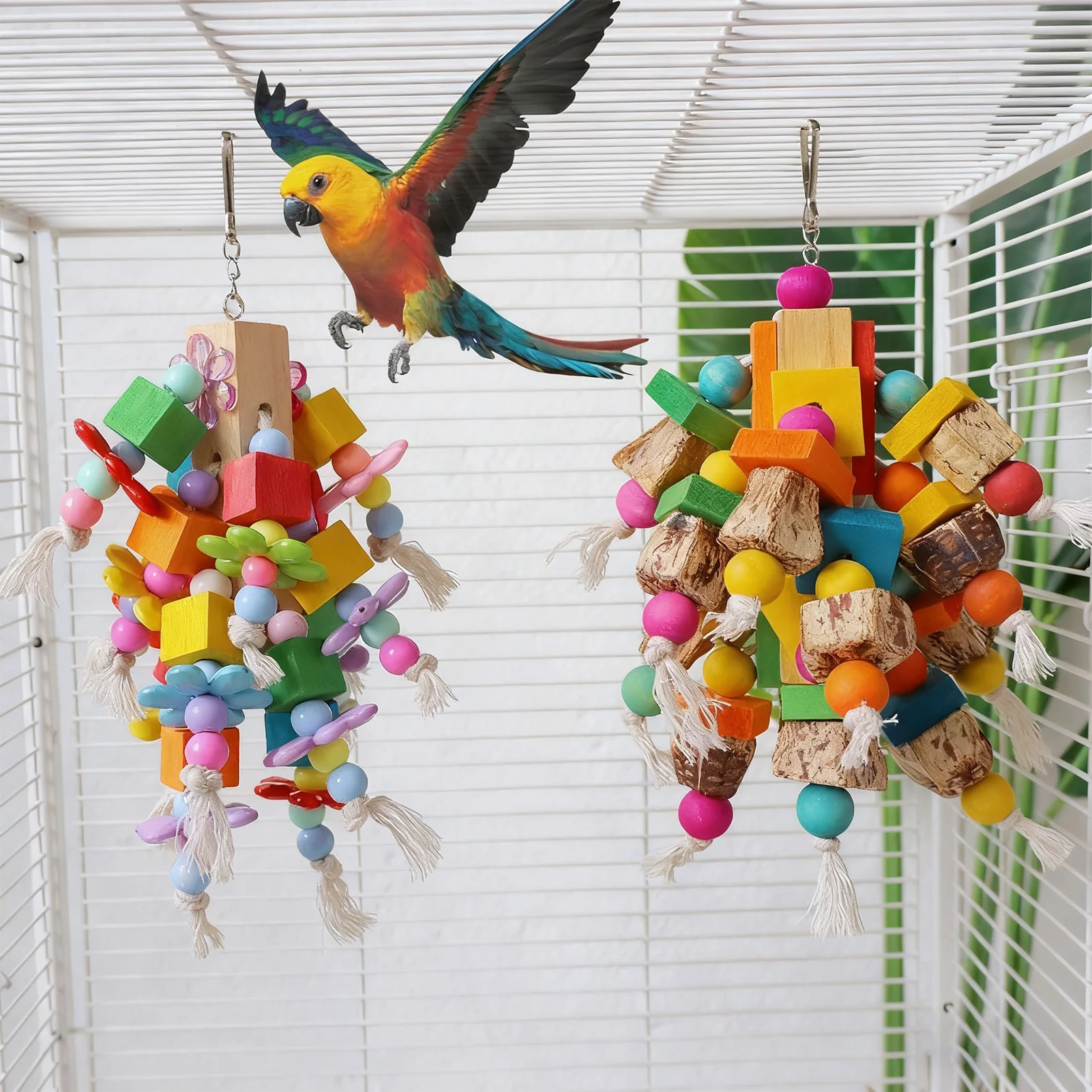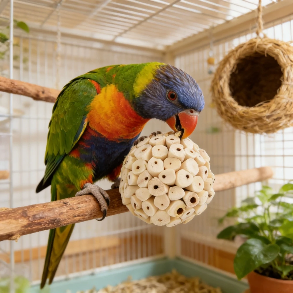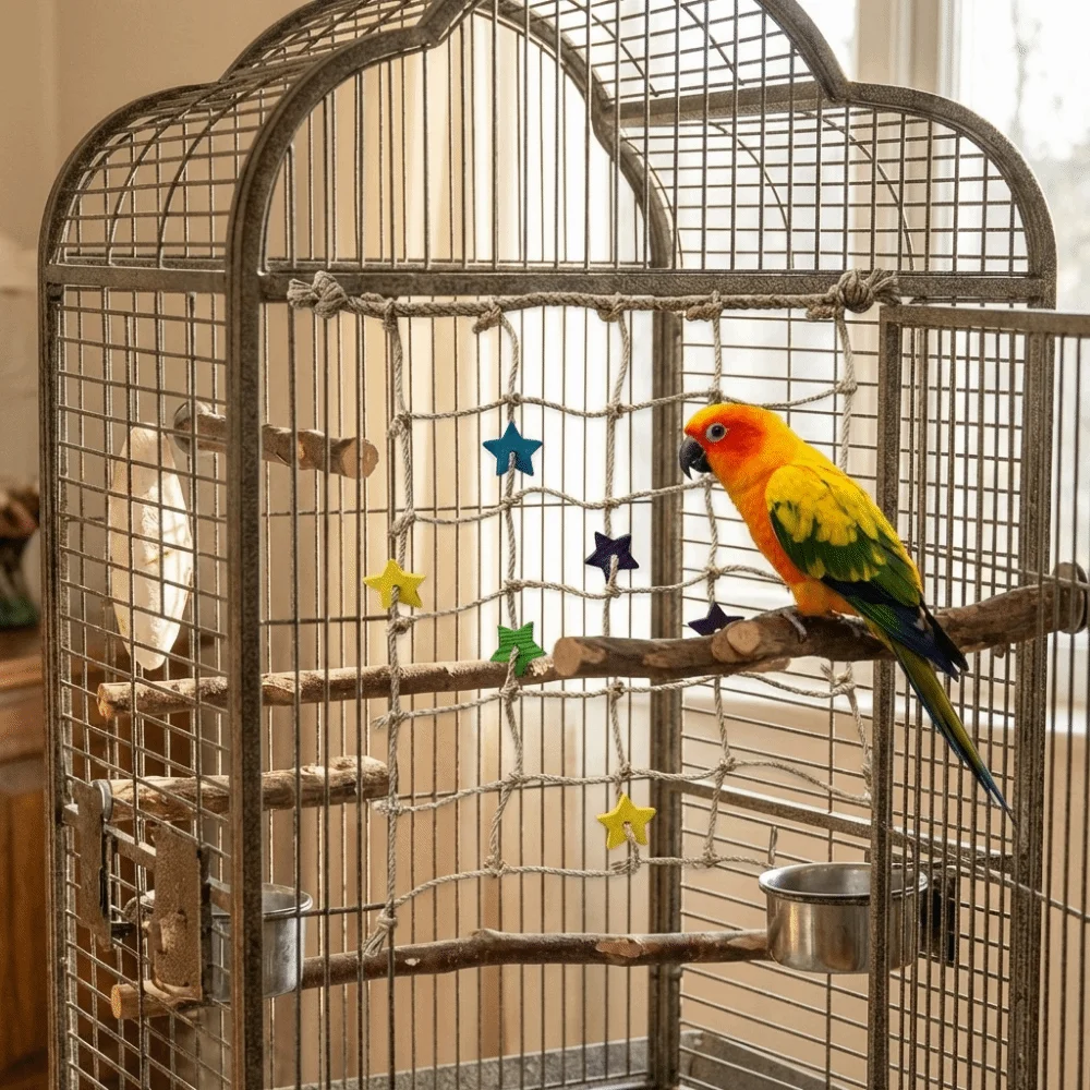 Brinquedo de Balanço para Pássaros em Corda de Algodão com Rede e Poleiro para Calopsitas, Periquitos e Acessórios para Gaiolas - Atividade de Enriquecimento e Brincadeira