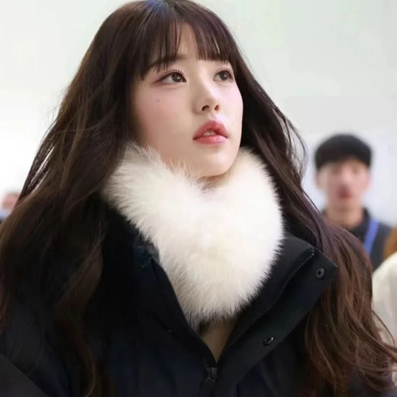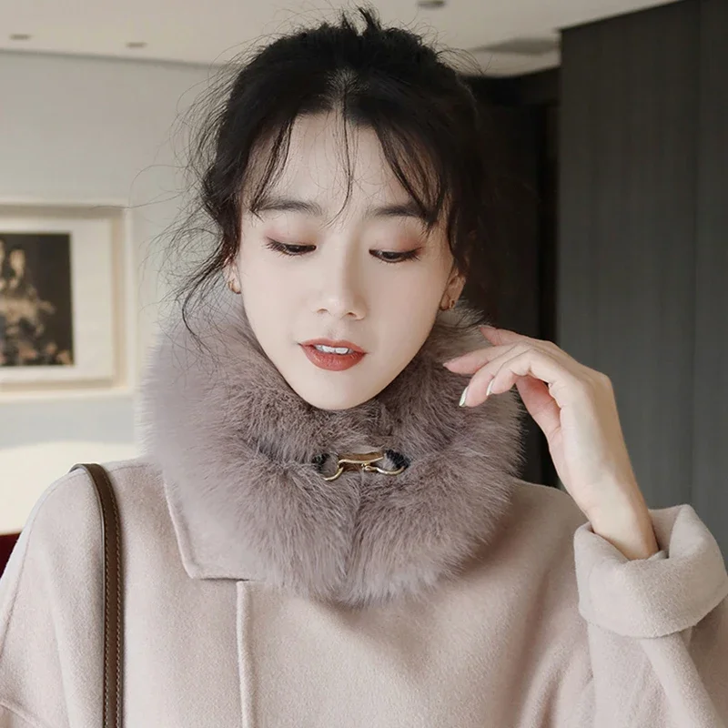 Cachecol de pele de raposa estilo fashion, aquecedor de pescoço para mulheres, outono e inverno, gola dupla face espessa e quente.