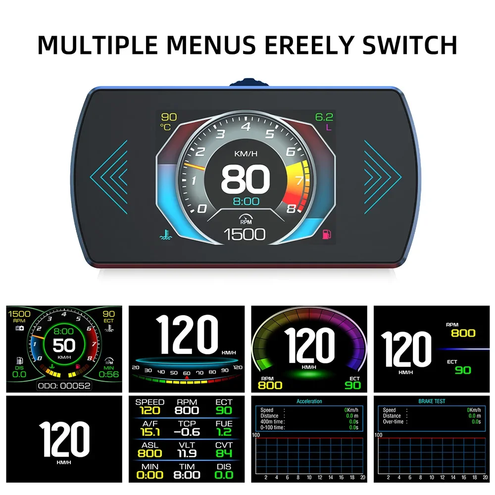 Hud a501 obd2 carro head up display carro inteligente água & óleo temp turbo rpm medidor digital odômetro alarme de segurança medidor automático up display