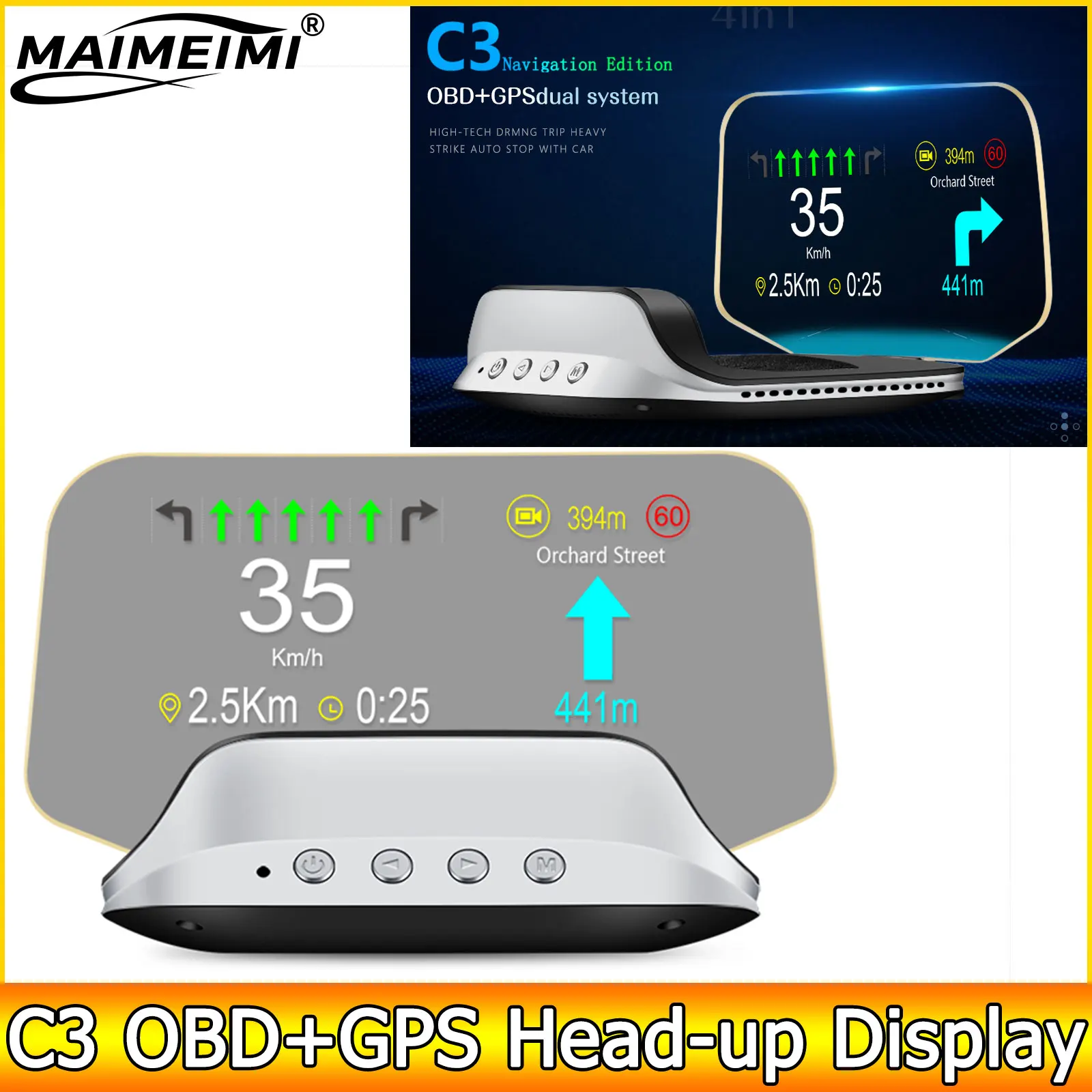 Projeção de navegação ad c3 carro obd2 + gps hud velocímetro temperatura da água relógio de tensão rpm alarme de excesso de velocidade display head-up