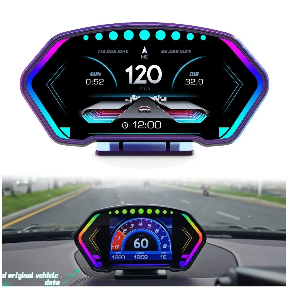 Obd2 + gps multi-função hud gadget on-board computador a-pilar guarnição instalar rpm turbo pressão de óleo temperatura da água velocímetro gps