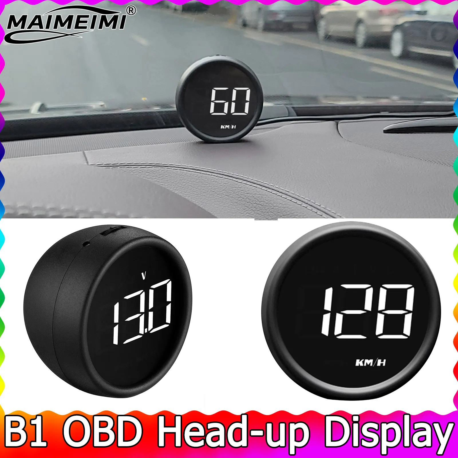 Velocímetro de carro com alarme B1 Obd2 HUD Digital Head Up Display KMH Acessórios eletrônicos Tensão de consumo de combustível Temperatura da água