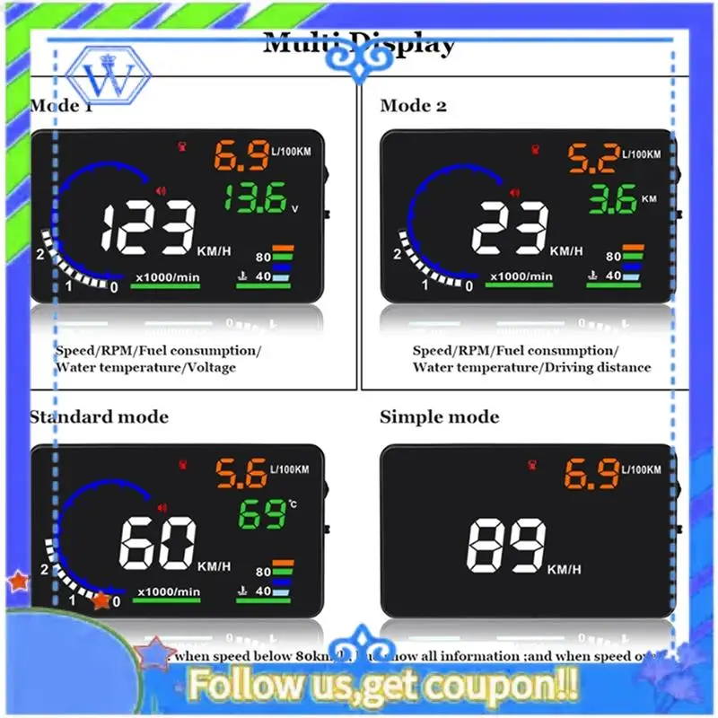 Hud obd2 headup display para carro medidor inteligente cabeça-up display velocímetro digital obd2 medidor digital inteligente ferramenta de diagnóstico do carro