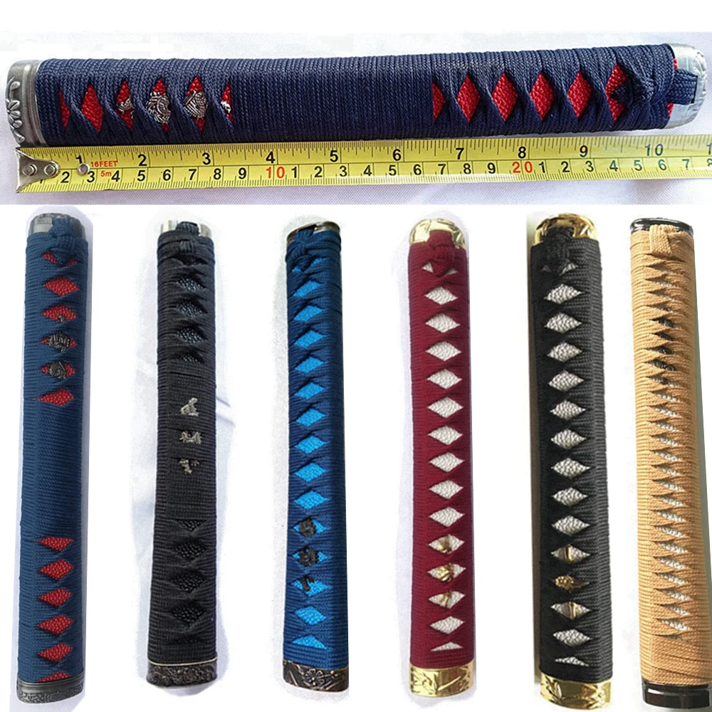 26cm real katana tsuka japonês samurai espada acessórios de substituição cabo madeira seda ito liga fuchi kashira menuki