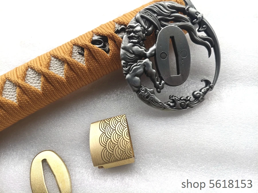 Tsuba de liga metálica de 26cm com design de Monstro Aquático e Ondas Marinhas, Habaki para espadas japonesas katana, wakizashi e tanto
