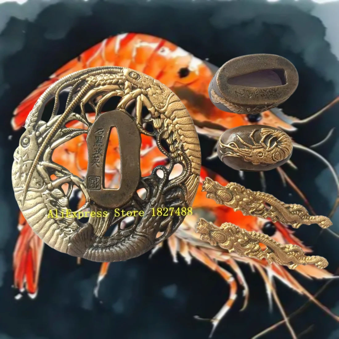 Um conjunto de acessórios tsuba de cobre camarão guad menuki fuchi kashira para katana wakizashi tanto espada japonesa acessório de substituição