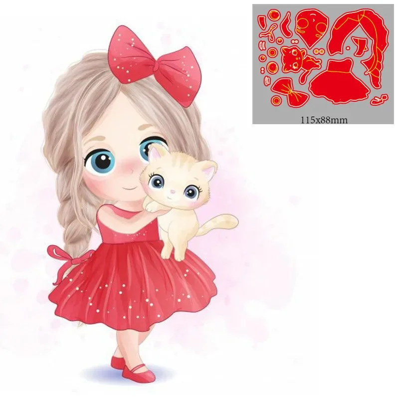 Corte de metal dados menina e gato scrapbooking cartões de papel decorativo artesanato gravação
