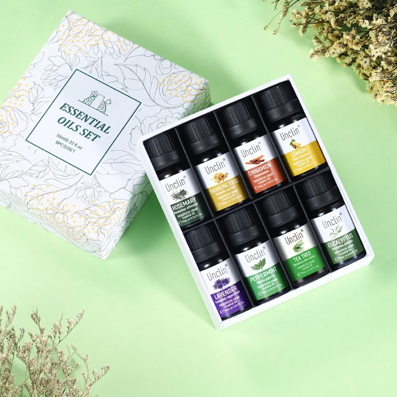 6/8 pces 10ml planta pura natural aromaterapia óleo essencial conjunto de presente, fragrância expandida cuidados com a pele aromatizante óleo essencial