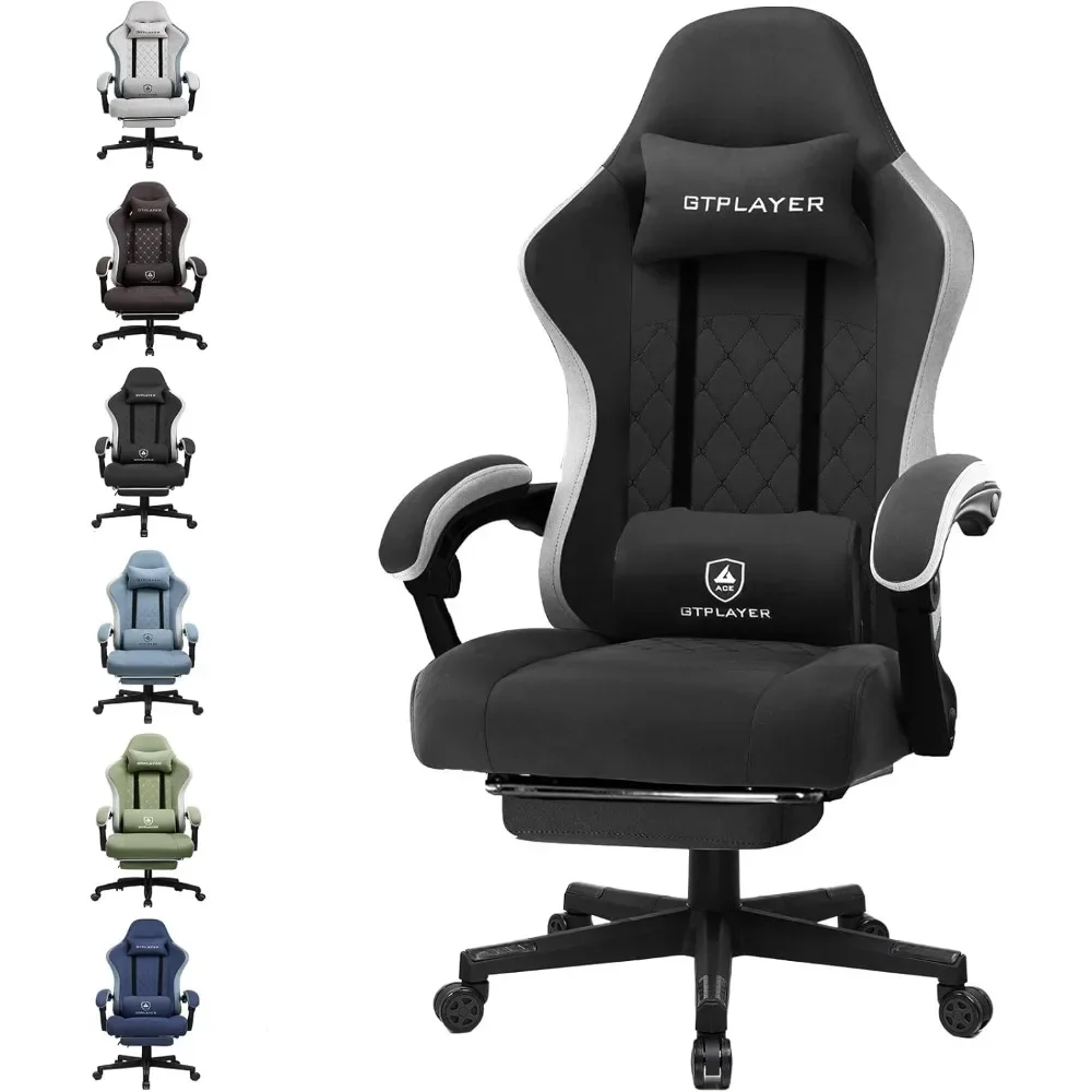 Cadeira gamer, cadeira ergonômica para jogos, cadeira de escritório com superfície de tecido, almofada de assento com molas, braços articulados e apoio para os pés