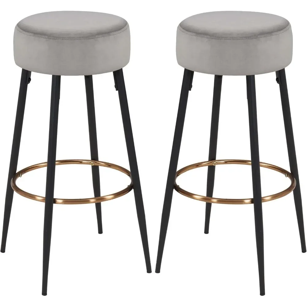 Conjunto de 2 Cadeiras de Bar, Cadeira de Bar Redonda, Veludo, Cadeira Bistro com Apoio para os Pés, para Bistro, Cozinha, Bar, Café, Sala de Jantar, Gr