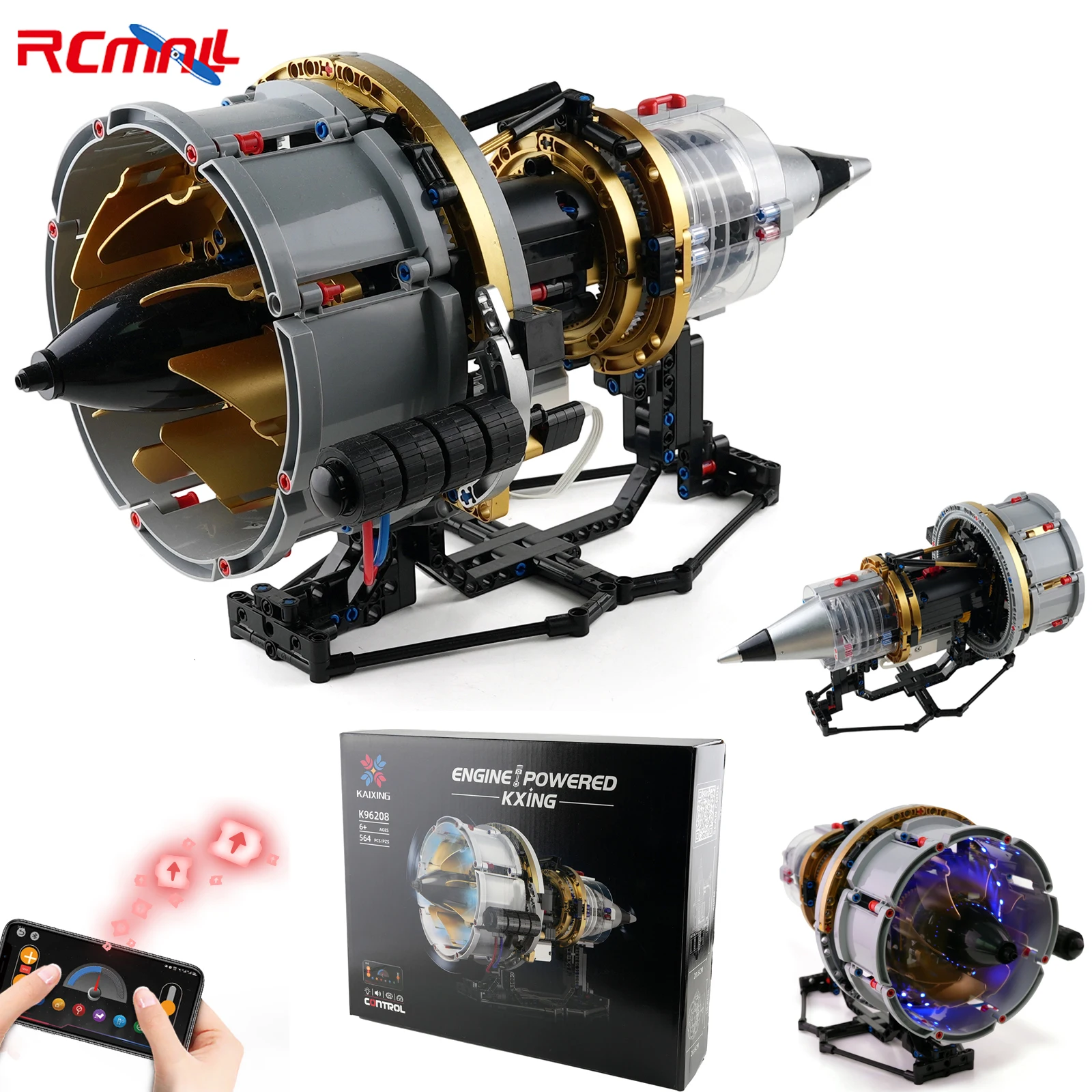 K96208 564 PCS APP-Programável Aviação Turbofan Motor Building-Blocos Modelo com Luz LED MOC Kit de Tijolos Criativos