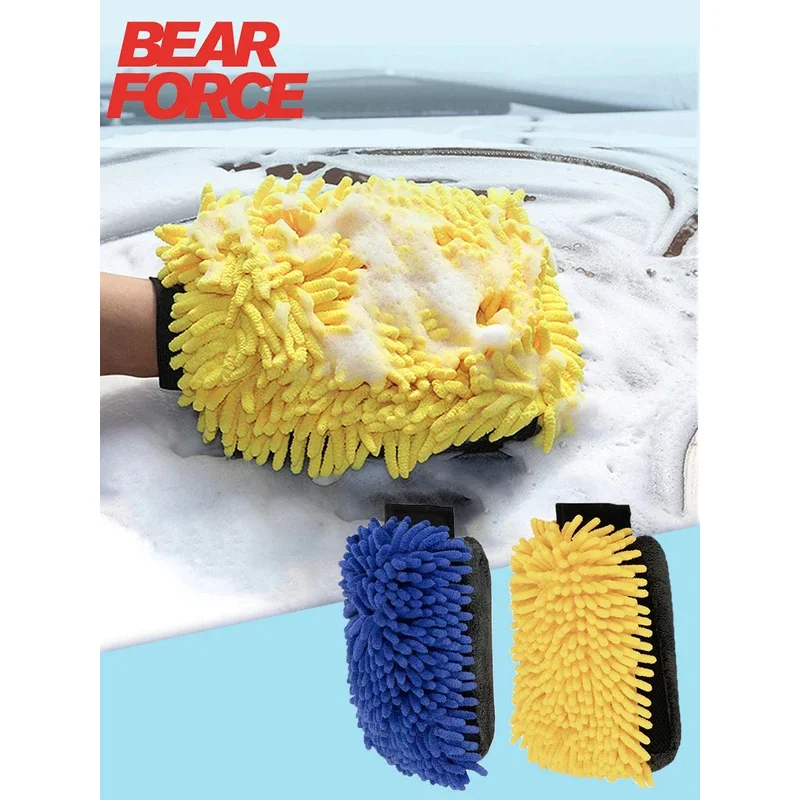 Luva de limpeza e lavagem de carro, luvas de lã para remoção de poeira, shampoo líquido, pano dupla face, esponja macia