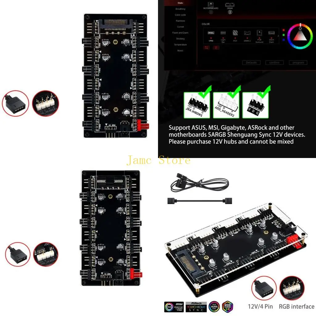 Lx0b argb + pwm 2 1 hub ventilador, 5v 3pin argb, 12v 4p rgb divisor hub adaptador ventilador