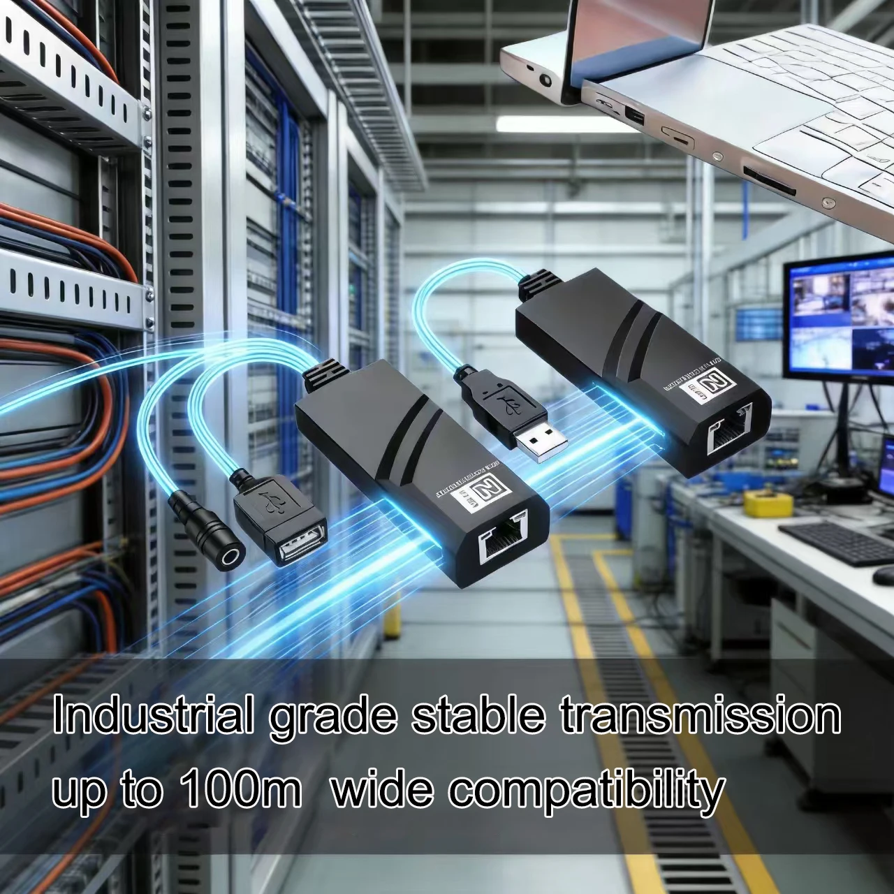 Extensor USB 2.0 de até 100m sobre cabo Ethernet Cat5e/Cat6, adaptador USB para RJ45 para câmera, mouse, teclado, impressora, pen drive USB.