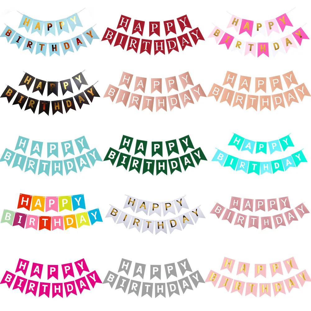 Decoração de festa de aniversário com estampa de cachorro, letras de cauda e bandeiras coloridas, suprimentos de decoração de feliz aniversário