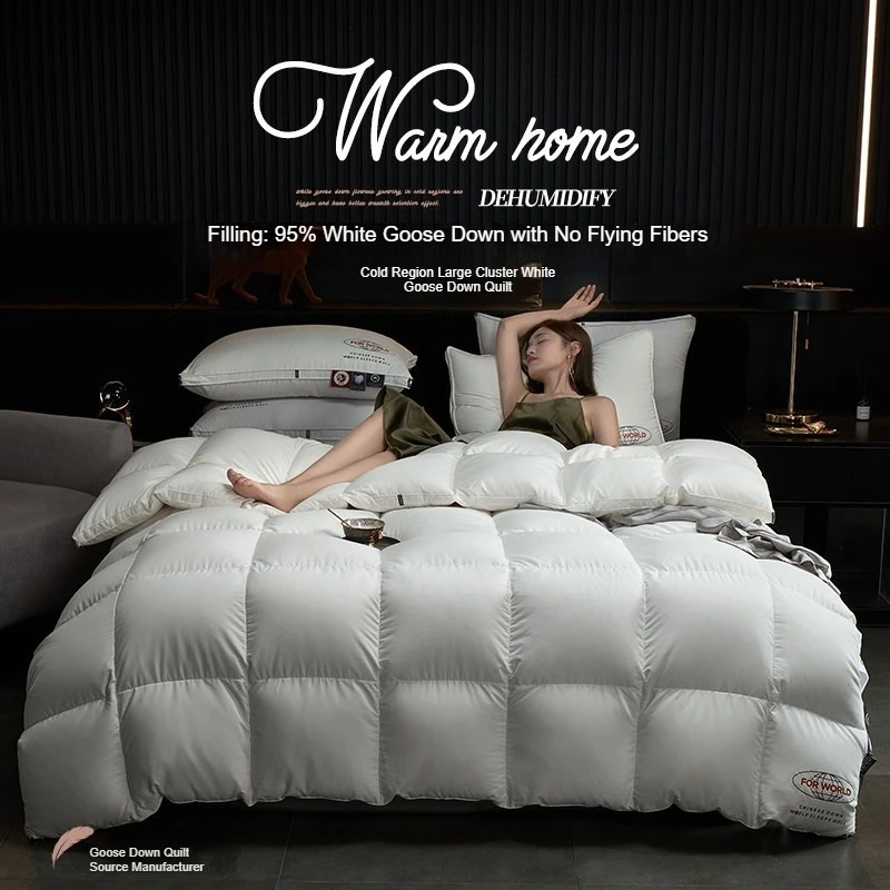 Colcha de penas de inverno, colcha de algodão de penas de ganso, edredom de verão e inverno preenchido com penas de algodão de seda confortável