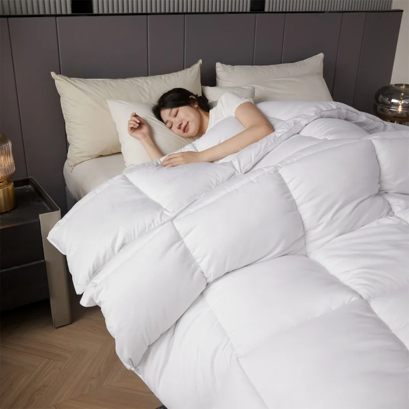 Edredão de penas de ganso, penas de ganso branco, item único, edredom de hotel, boa retenção de calor, edredom grosso de algodão em tamanho integral