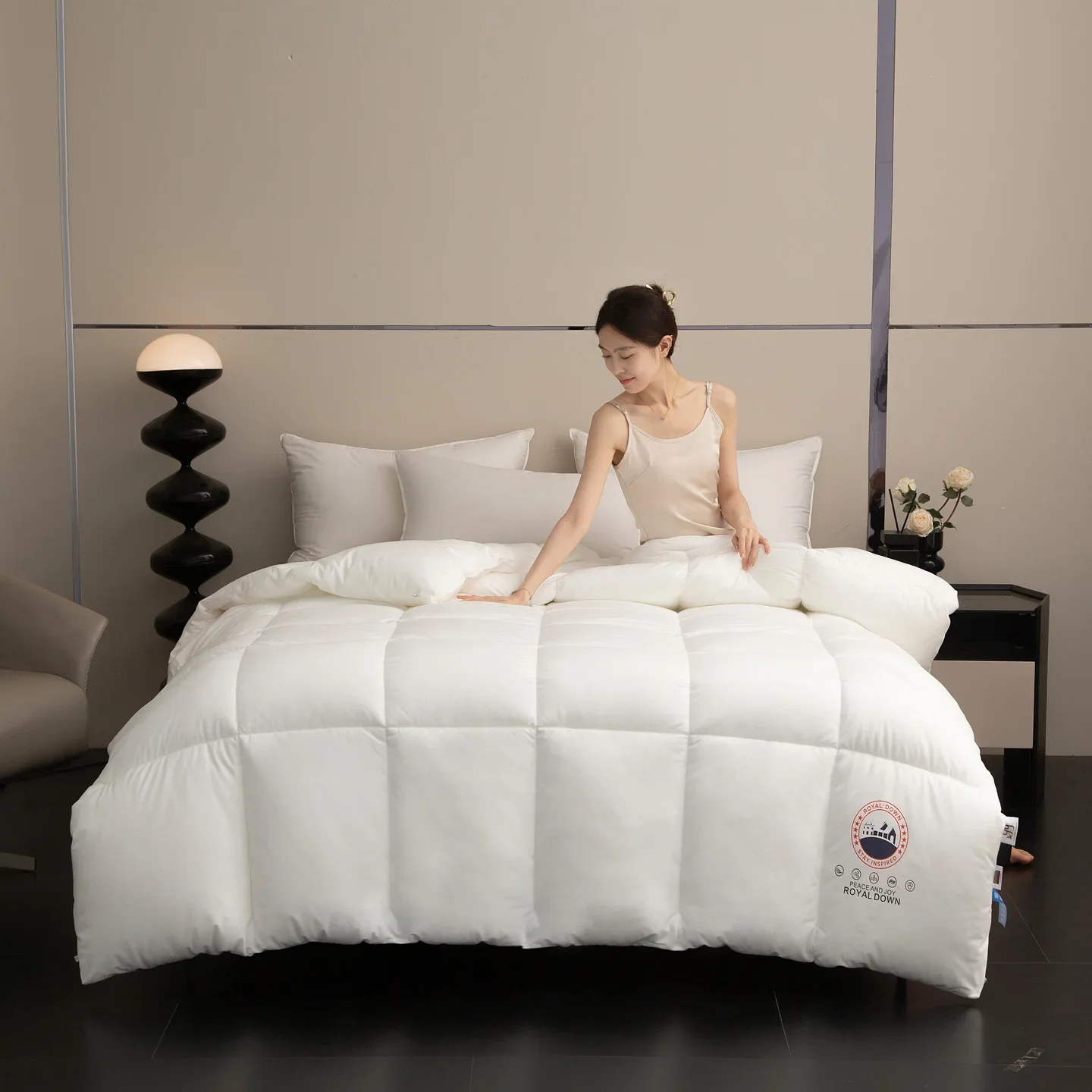 Edredão de penas de ganso, penas de ganso branco, item único, edredom de hotel, boa retenção de calor, edredom grosso de algodão em tamanho integral