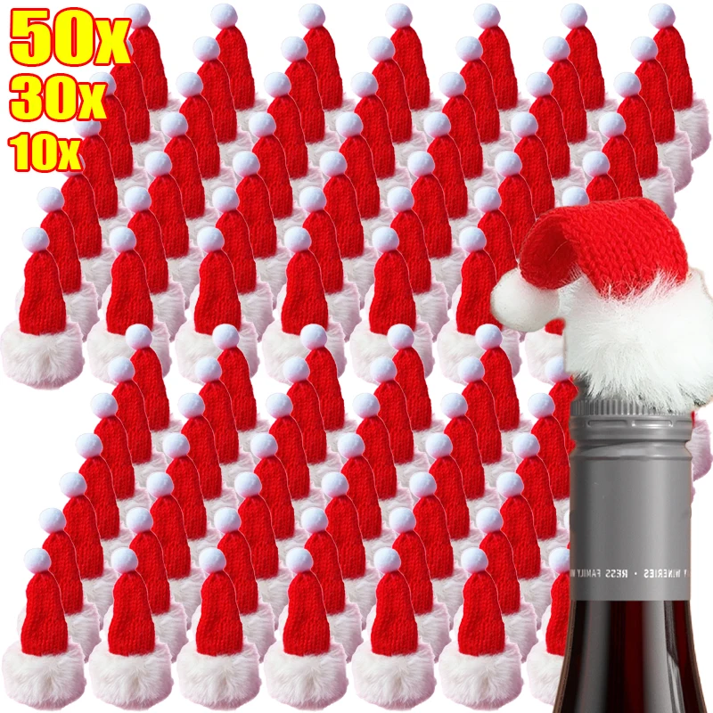 50/1x mini chapéu de papai noel vermelho chapéu de natal pirulitos tampas de garrafa de vinho decorações de mesa festa presentes de ano novo chapéu de natal