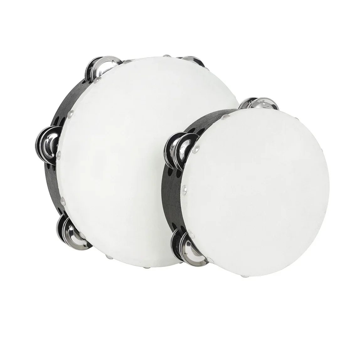 8 / 10 Polegada pandeiro de madeira jingles de fileira dupla ajustável para palco/église com chave de afinação, tambor de mão com estrutura reforçada de metal