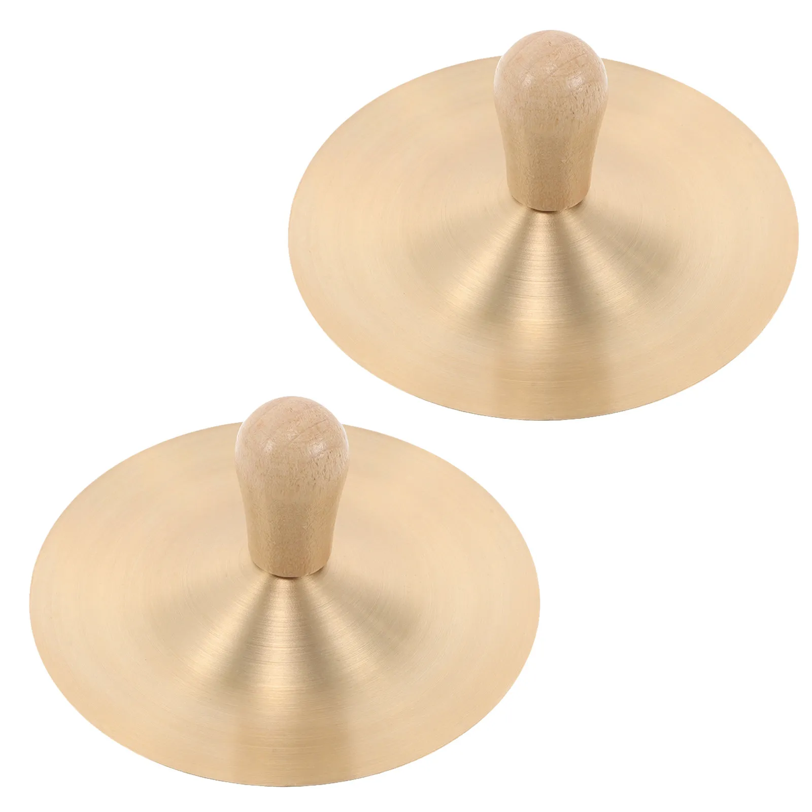 1 Par de Mini Címbalos de Cobre Estilo Orff com Cabo de Madeira, Címbalos de Mão para Educação Musical e Ritmo em Jardim de Infância