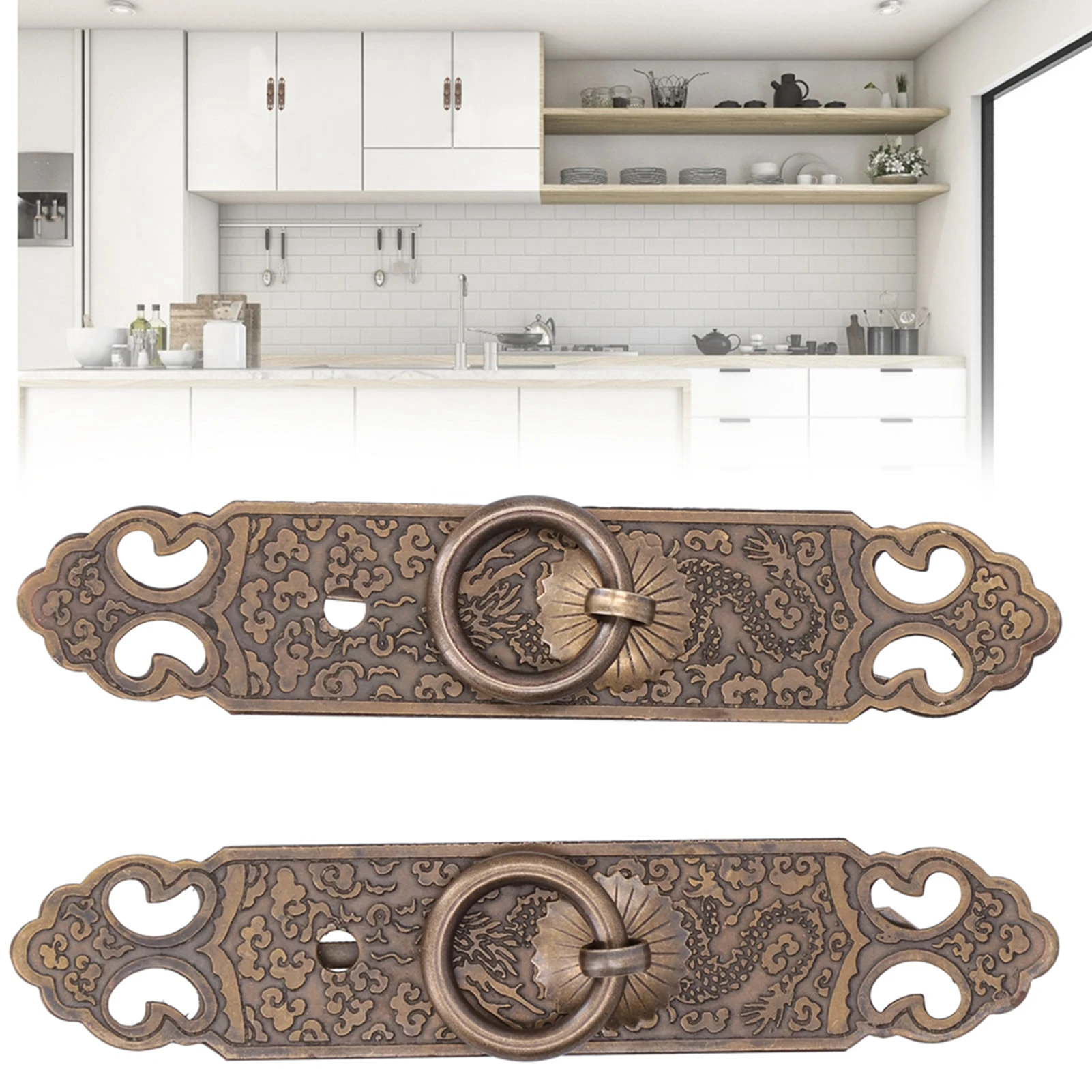 Maçaneta de porta antiga, maçaneta de latão antigo, padrão requintado, alça de barra reta, acessórios para armário, guarda-roupa