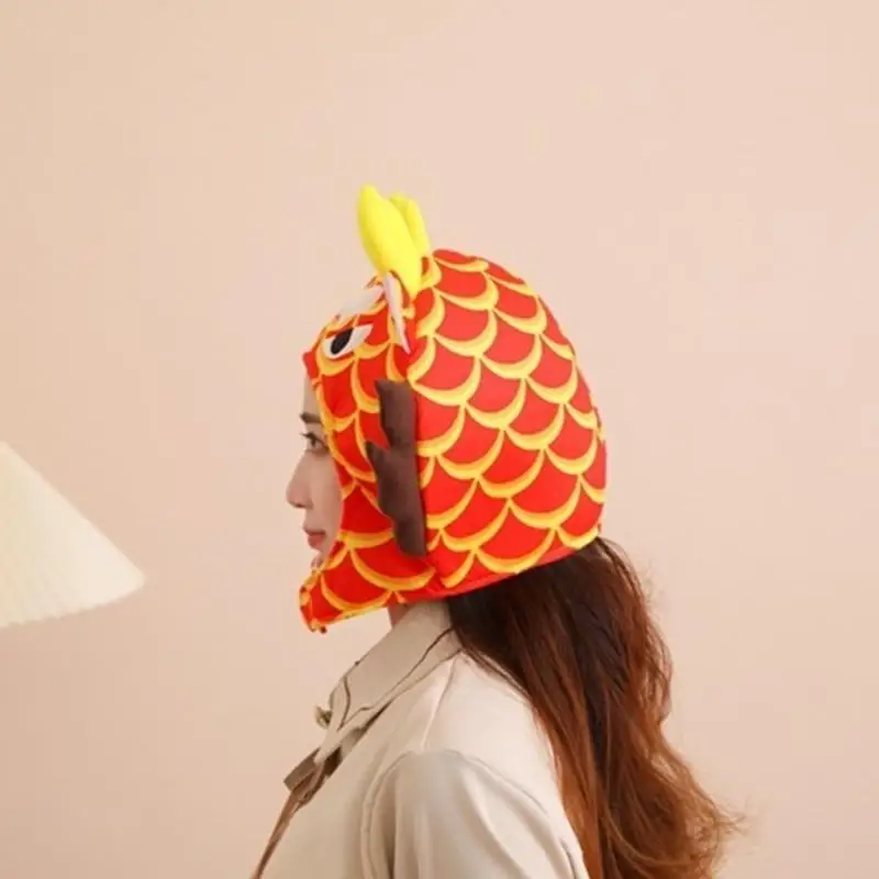 39BD Chapéu Dragão para Festa Família Adulto Crianças Chapéu Festival Ano Chinês Foto Chapelaria