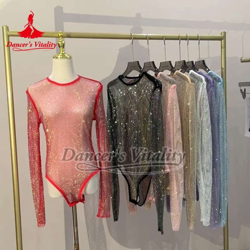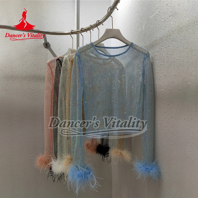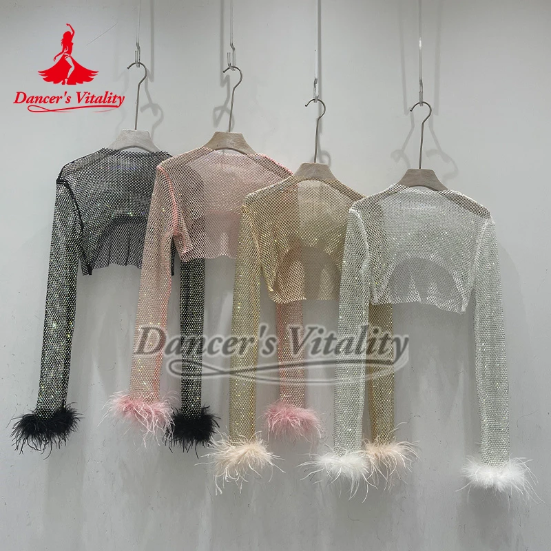 Top arrastão transparente masculino, gola redonda, manga comprida, envoltório de ombro, encolhe os ombros, top curto de dança, roupa de balada para boate, dança de poste
